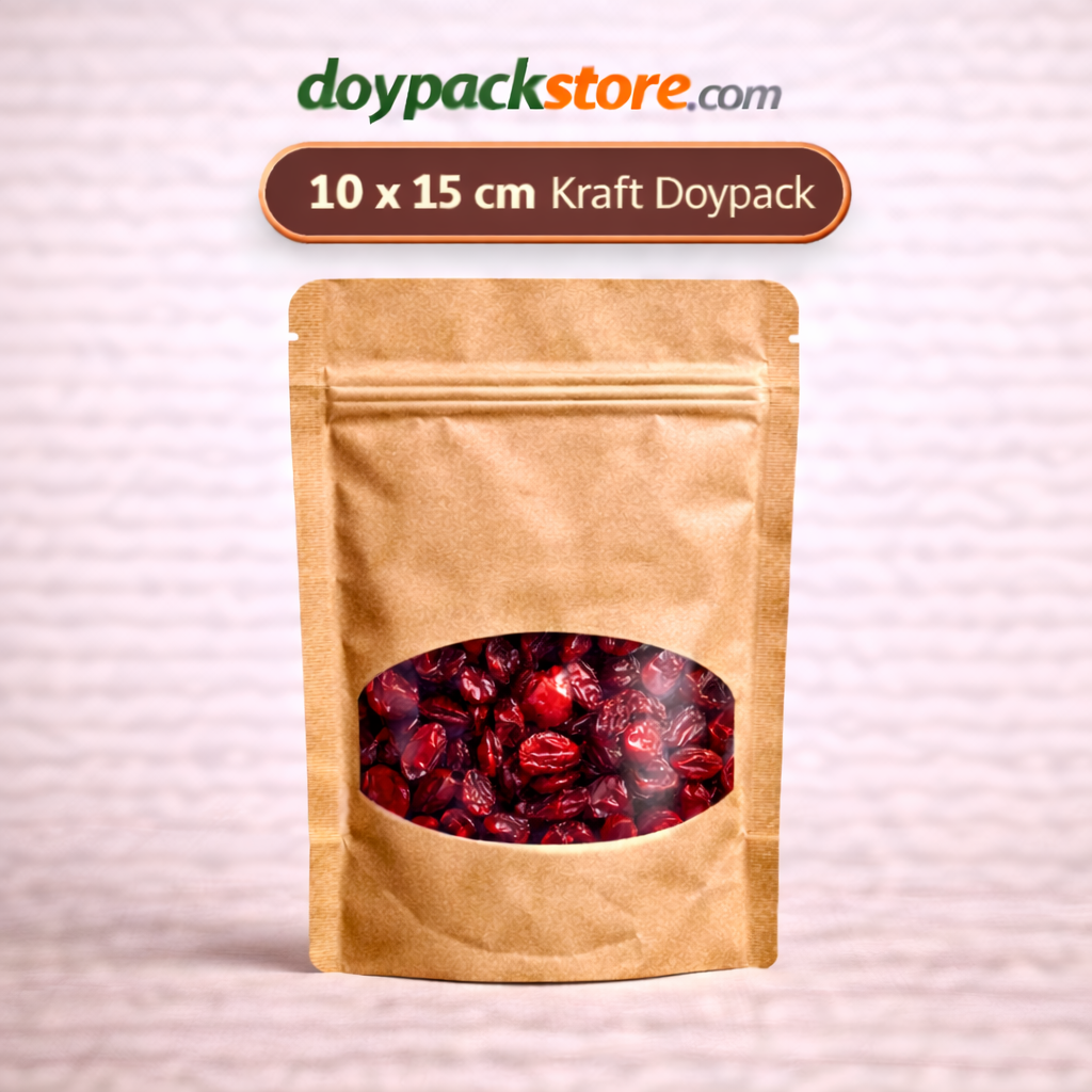 10×15 cm Kraft Doypack, küçük ve orta gramajlı ürünlerin paketlenmesi için geliştirilmiş modern bir doypack ambalaj çözümüdür. Dik durabilen yapısı sayesinde raflarda düzenli bir görünüm sunar ve ürünlerin daha dikkat çekici olmasını sağlar.