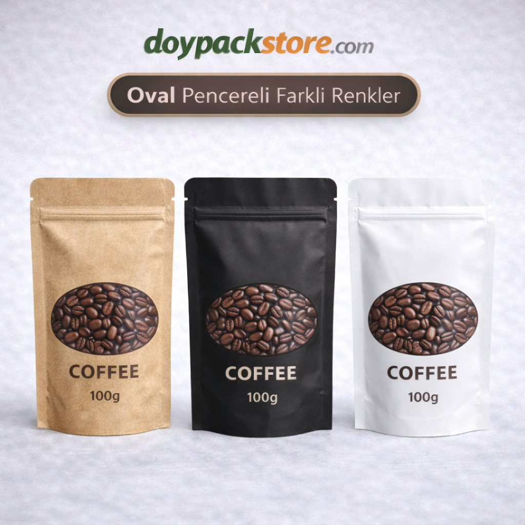 Oval Pencereli Kraft Pouch, kahve, kuruyemiş, baharat, bitki çayı ve doğal ürünlerin paketlenmesi için tasarlanmış, şık kraft görünüme sahip ve ön yüzeyindeki oval şeffaf pencere ile ürünün sergilenmesini sağlayan modern ambalaj çözümüdür. Zip kilitli yapısı sayesinde tekrar kapanabilir ve kullanım kolaylığı sunar.